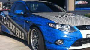 By the way, when I talk of wrapping I refer to sticking a digitally printed UV laminate over the Datapod using a state-of-the-art (no pun intended) design program that tailors the artwork to the exact dimensions of your Datapod or Datapod System. And because wraps were originally used to wrap vehicles, the wrap is designed to last the lifetime of a vehicle or at least until you change your mind and decide on a re-wrap. (Pictured right: Wrapping originally started with wrapping vehicles – picture courtesy of Signarama West Burleigh)